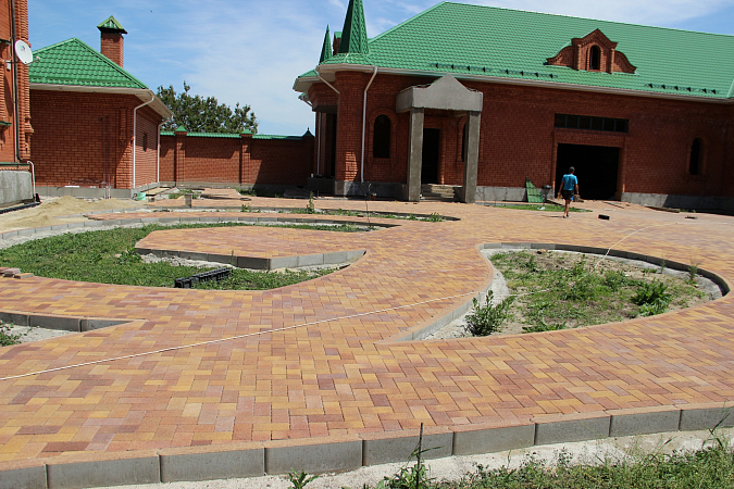 Тротуарные плиты и элементы городской среды производятся методом полусухого вибропрессования.