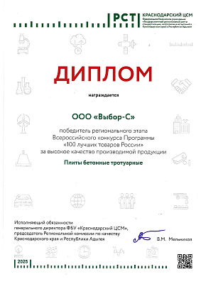 26 ноября 2025 года состоялась торжественная церемония награждения победителей Всероссийского конкурса Программы «100 лучших товаров России», где компания «Выбор» в очередной раз была награждена Почетным знаком «Отличник качества».